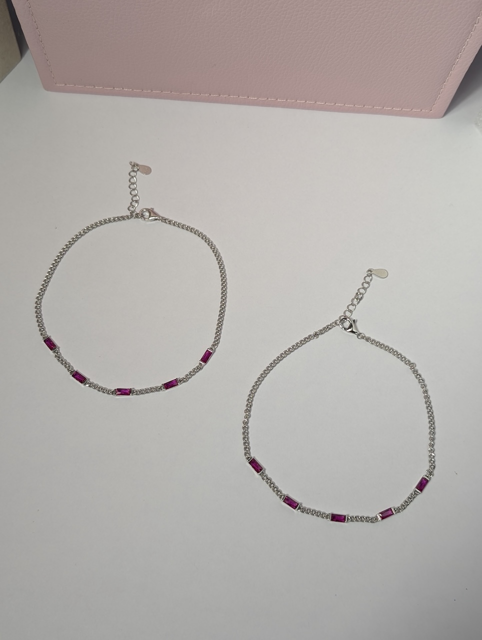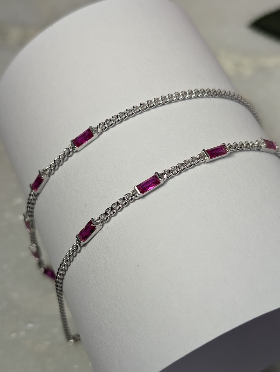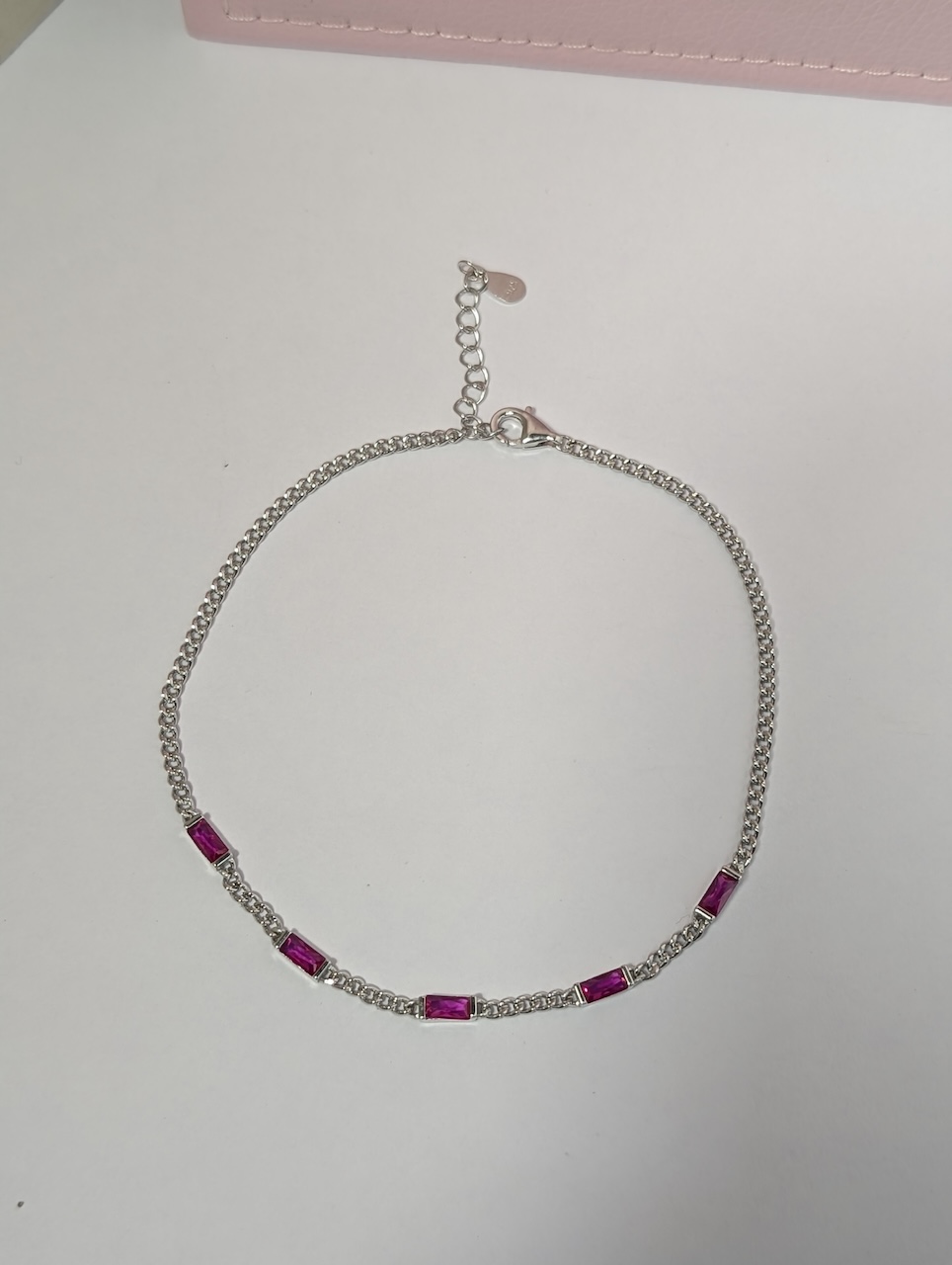 Design: Delicate chain with ruby-pink baguette stones